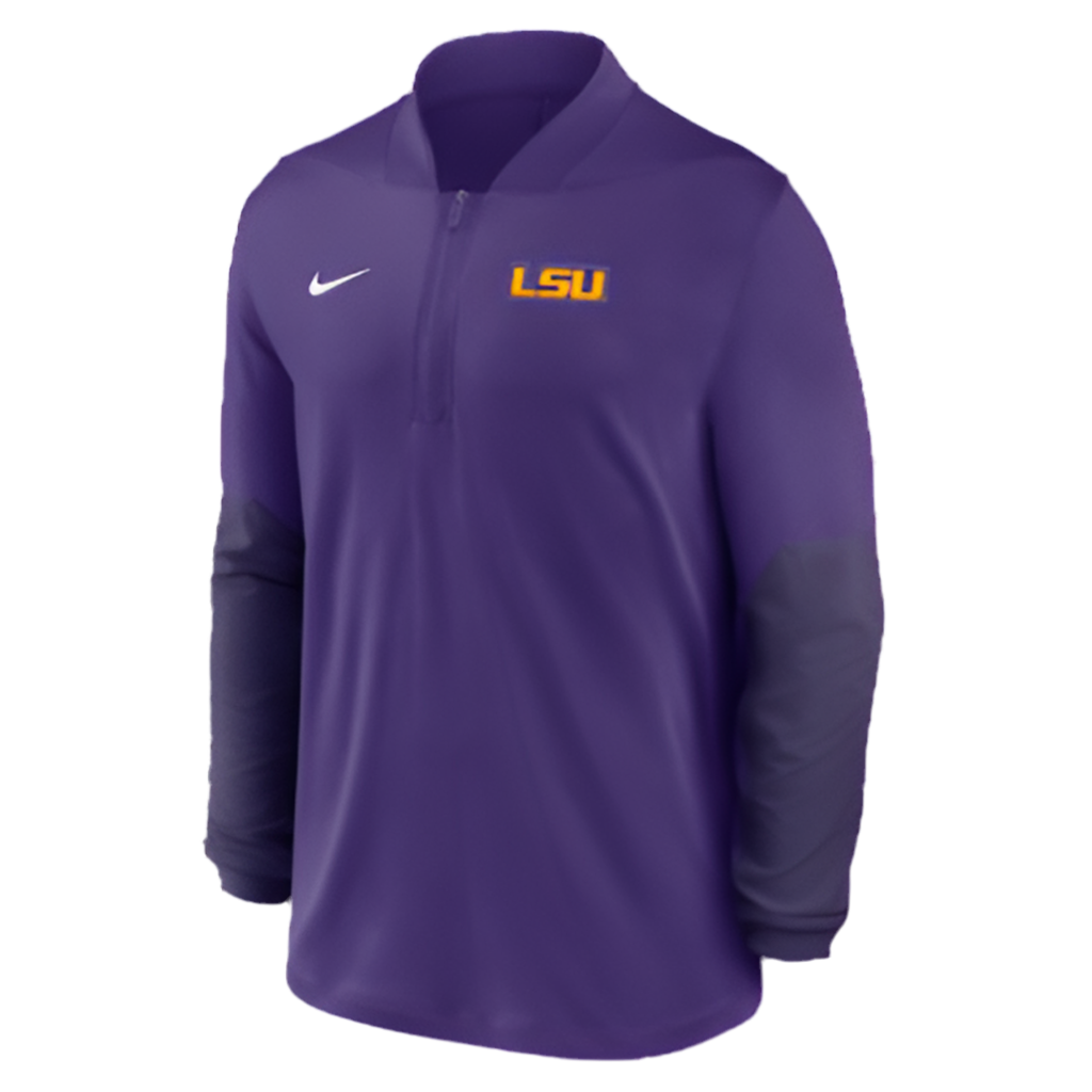 This LSU Men's Nike DF Half Zip LS Top in purple is a stylish and functional athletic piece. The half zip design allows for easy temperature control while the long sleeves provide extra coverage. The Nike brand ensures quality and the Dri-FIT technology wicks away sweat for a comfortable and dry workout.