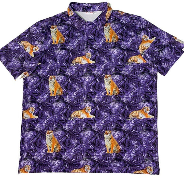 Stay cool and stylish on game day with the LSU Men's Tiger Polo. This Hawaiian-style polo features Dri-fit technology to keep you dry and comfortable while you cheer on the Tigers. The iconic Big Tiger logo on the front adds a touch of team pride. Expertly crafted for the ultimate fan experience.