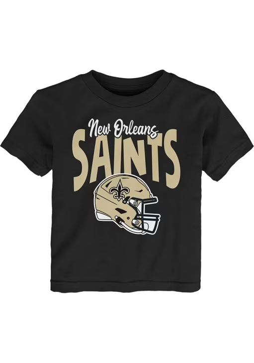 Upgrade your little one's game with our Saints Toddler Head of the Team SS Tee. Made with a classic black design, this tee features the iconic saints helmet on the front, making your child the ultimate fan. Perfect for game days or everyday wear, this tee is a must-have for any young Saints supporter.