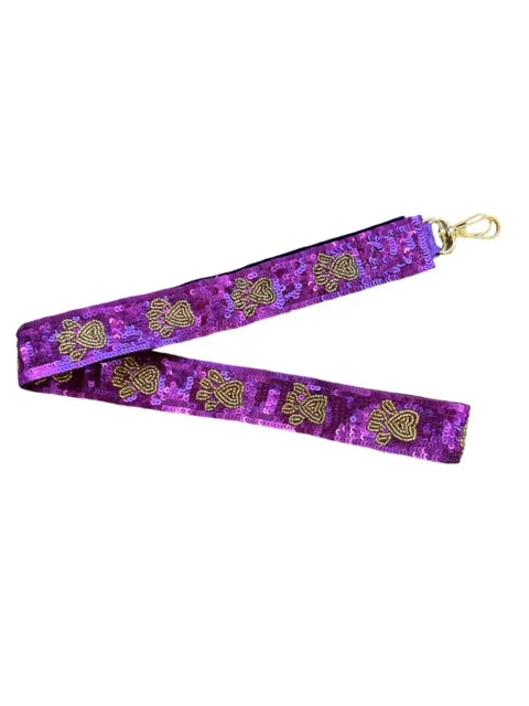 Add some sparkle to your game day look with the paws Strap! Featuring a clear bag strap adorned with shimmering sequins and a bold "purple and gold paw" design, this accessory is perfect for showing your team pride while complying with stadium bag policies. Go team!